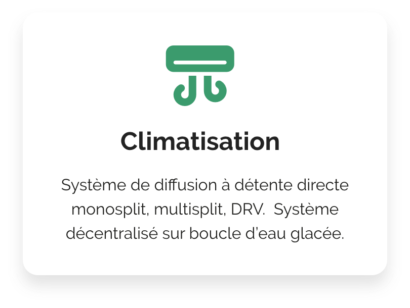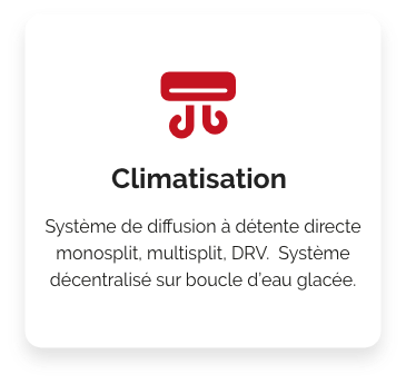 Système de diffusion à détente directe monosplit, multisplit, DRV. Système décentralisé sur boucle d’eau glacée.