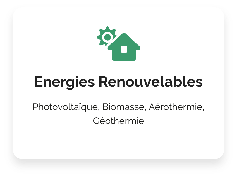 Photovoltaïque, Biomasse, Aérothermie, Géothermie